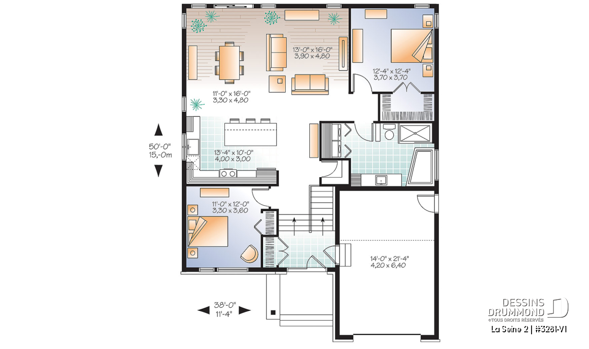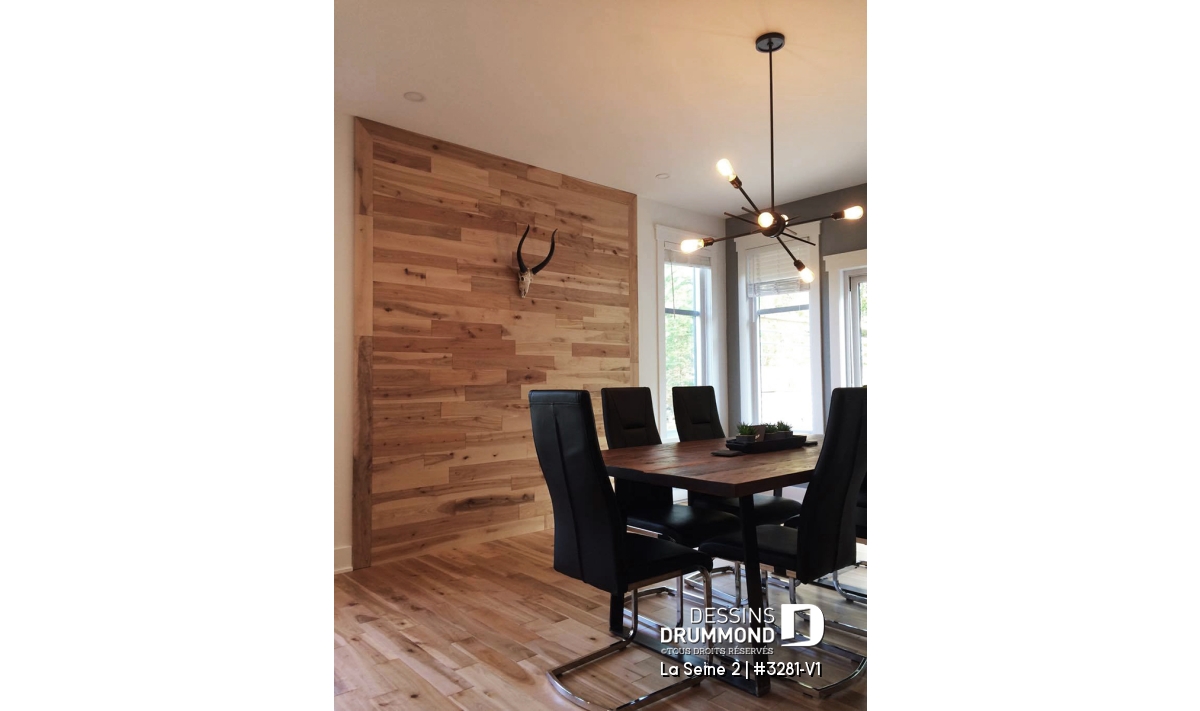 Conçu à partir du déjà très populaire plan 3281, ce modèle version se veut encore plus logeable avec son plafond à 9 pieds de hauteur sur tout le rez-de-chaussée et l’addition de 2 pieds en profondeur pour un plan faisant désormais 38 pieds de largeur par 50 pieds de profondeur avec un garage fini sur 14 pieds par plus de 21 pieds.