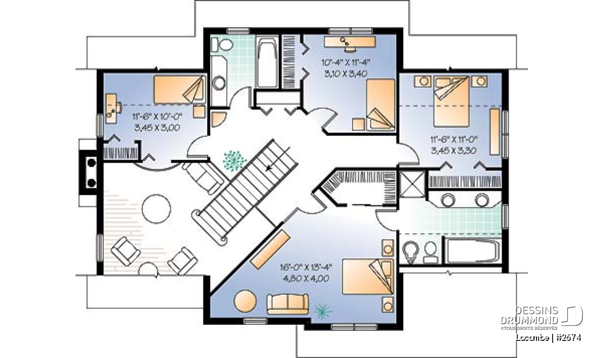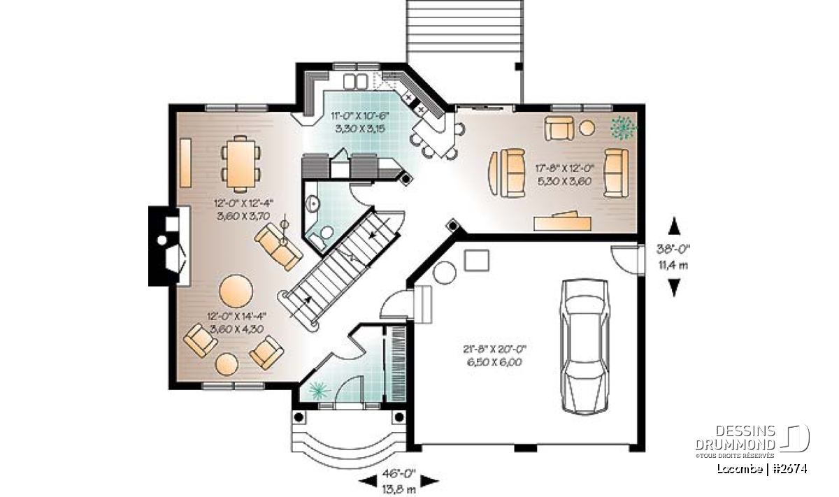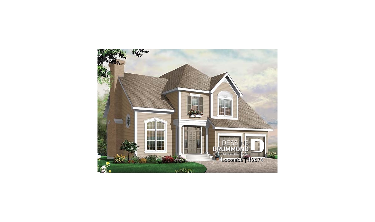 Peu populaire à sa sortie sur le marché et probablement en raison d’une illustration non conventionnelle de son extérieur ( de nuit et de couleur jaune ), ce modèle, une fois ré-illustré, a suscité davantage d’intérêt de la part de futurs propriétaires. Est-ce en raison de son extérieur bien équilibré ou de son intérieur gravitant autour d’un escalier original ?