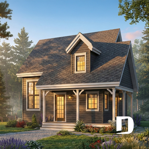 Le plan de maison LAMARCHE (#3505) propose une architecture champêtre à étage au charme rustique, idéale pour les familles ou les couples qui recherchent une maison chaleureuse, lumineuse et bien pensée. Avec une superficie habitable totale de 1 200 pieds carrés répartis entre le rez-de-chaussée et l’étage, ce modèle compact offre une organisation intérieure efficace et conviviale. De plus, le sous-sol de 624 pieds carrés, laissé non aménagé, permet d’ajouter facilement de l’espace de vie selon les besoins actuels ou futurs.