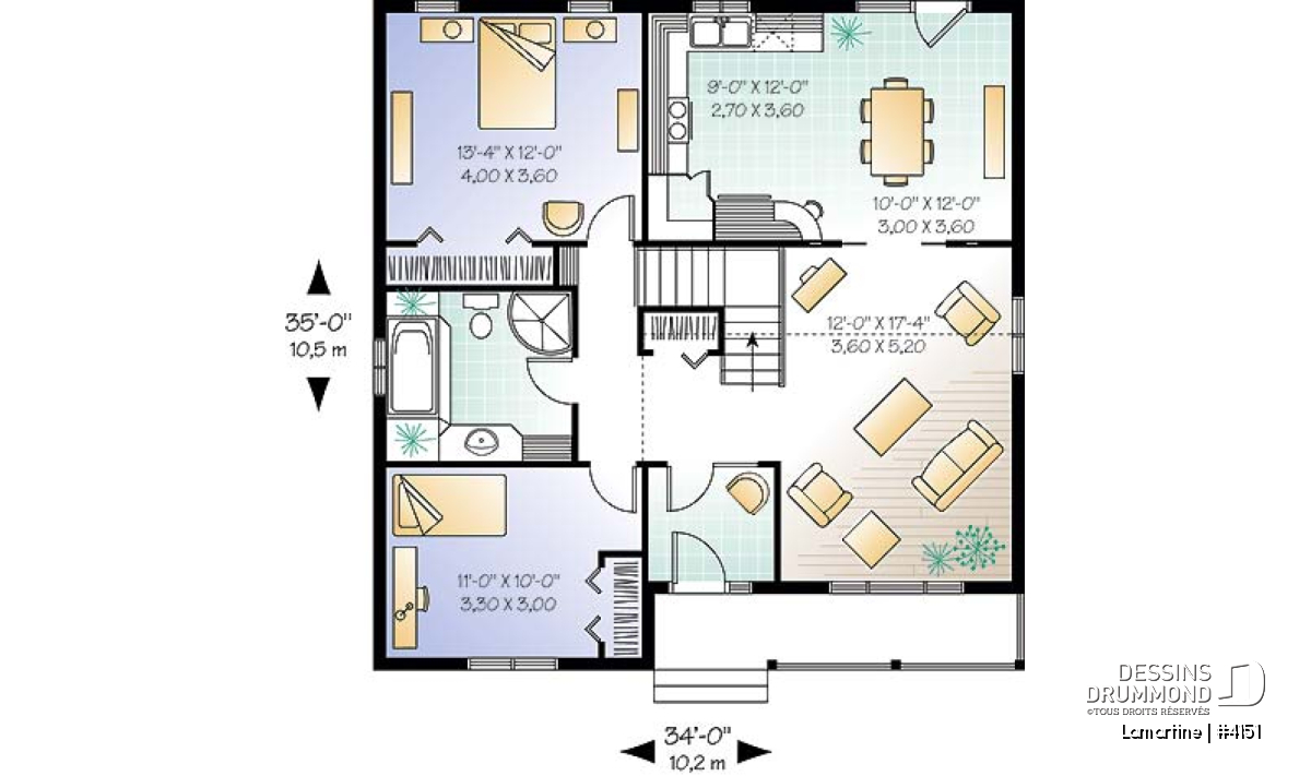| Largeur | 34'0" | Profondeur | 35'0" |