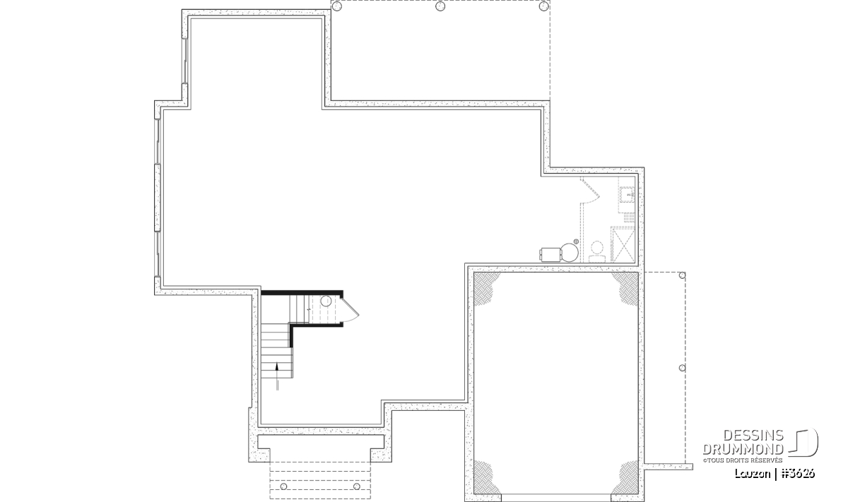 • Sous-sol non fini, à aménager, inclus au plan de base