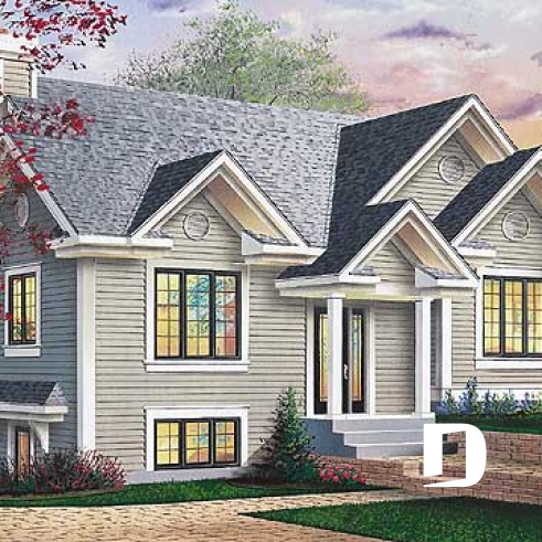 En proposant une entrée split et un accès direct au sous-sol, ce modèle, plan # 2131 aussi nommé Le Cape, s’apparente davantage à une maison à étage qu’à une maison de plain-pied. En effet, sa fenestration abondante, sa grande terrasse à l’arrière et son look ressorti de terre en font une maison très lumineuse et d’une certaine envergure.