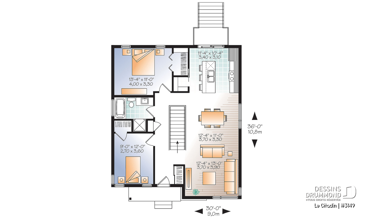 Le plan plancher ouvert offre une vue sur tout le secteur d'activités du salon en passant par la salle à manger pour finir à la cuisine avec grand ilôt et portes patio.