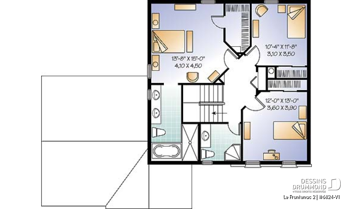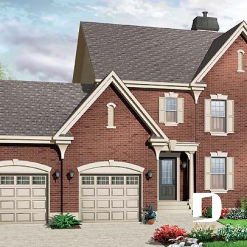 Plan de maison de style traditionnel, à étage, avec garage offrant 3 chambres.