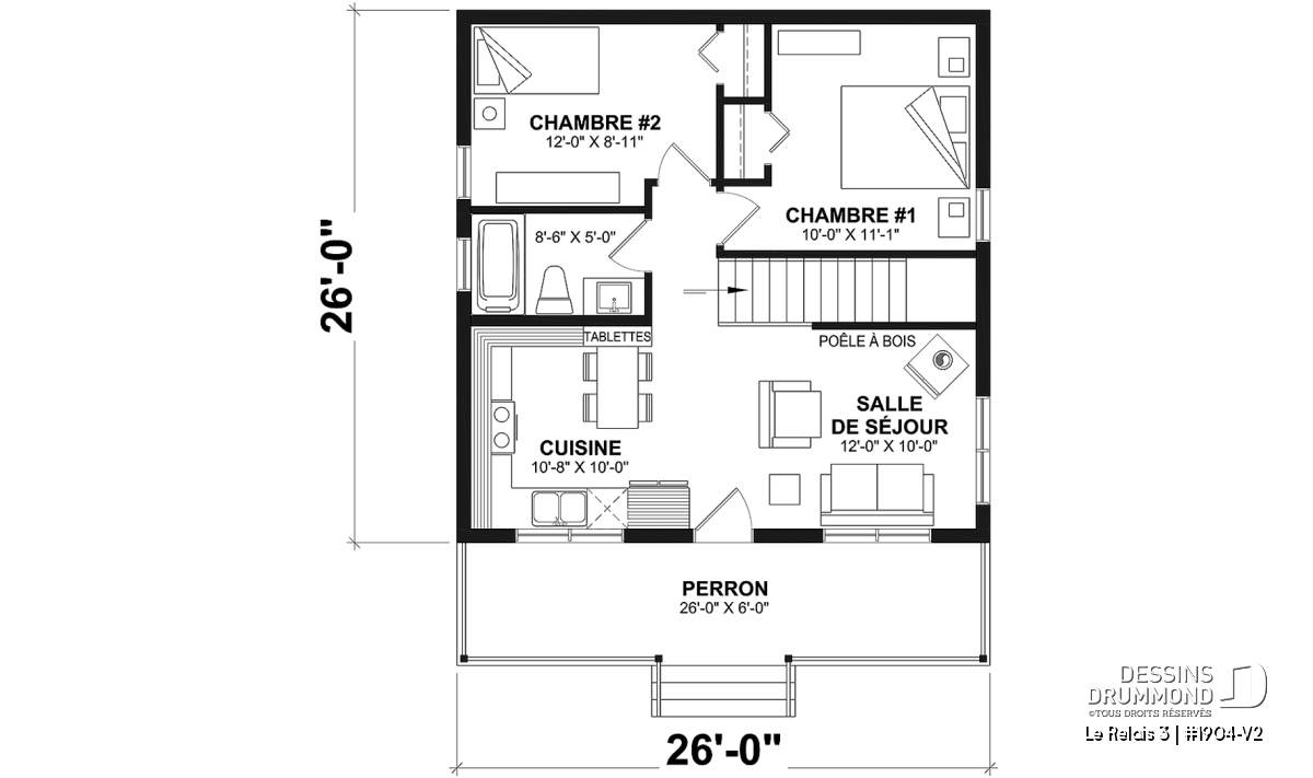 | Largeur | 26'0" | Profondeur | 26'0" |