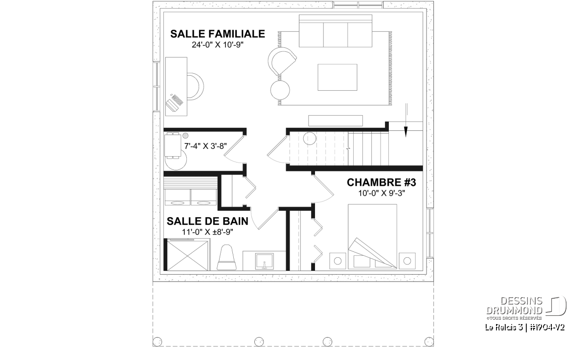 *Si vous souhaitez acheter le plan du sous-sol aménagé, veuillez sélectionner cette option dans le panier d'achat, dans la section "Sélectionner votre fondation". Si vous ne sélectionnez pas cette option, vous recevrez un sous-sol non aménagé.