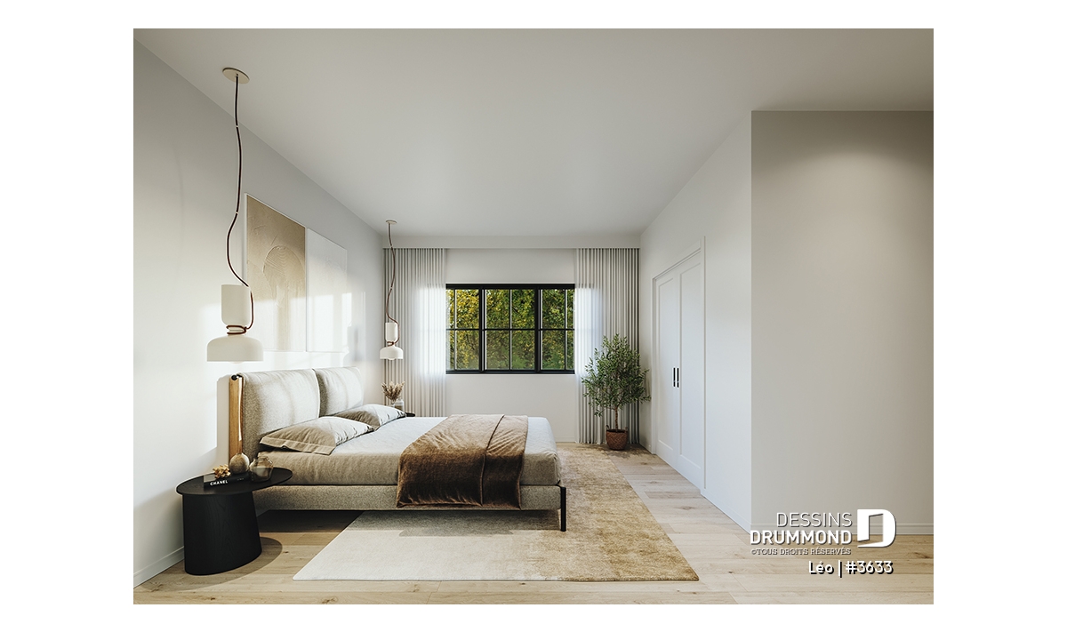 Chambre des parents avec grande garde-robe de type walk-in.