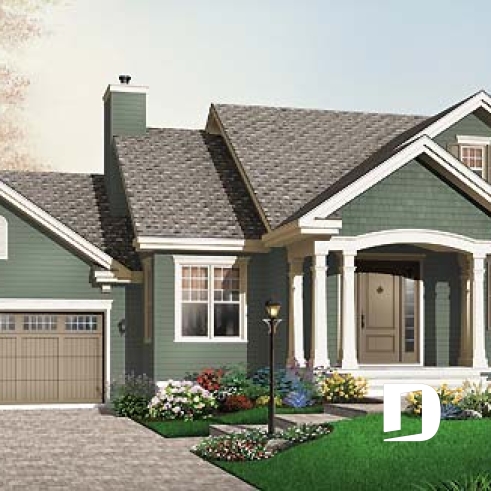 Rares sont ceux qui le proposent, mais ce plain-pied de style traditionnel le fait en suggérant un garage double fort bien équilibré avec le volume maison, tout en donnant une certaine envergure à celle-ci. De plus, avec un plafond à 11 pieds de hauteur, le garage se veut à la fois des plus utilitaire lorsqu’on parle de rangement.