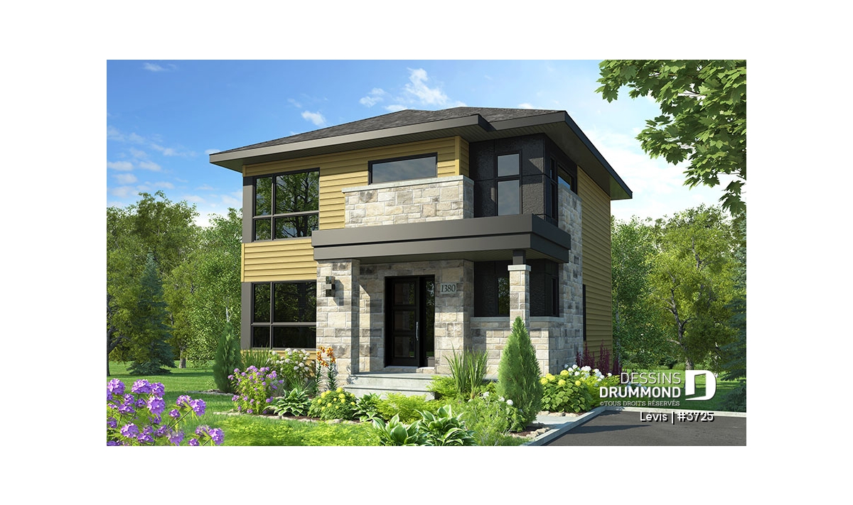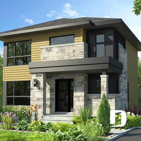 Plan de maison à étage de style moderne. et abordable.