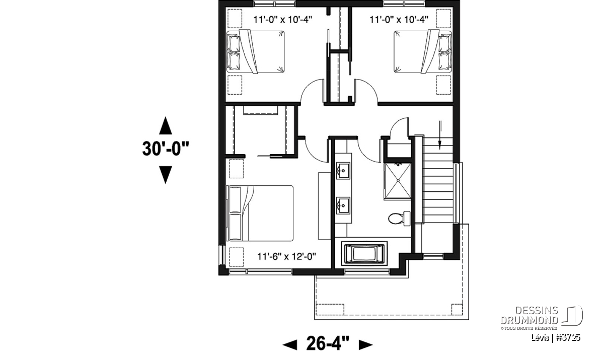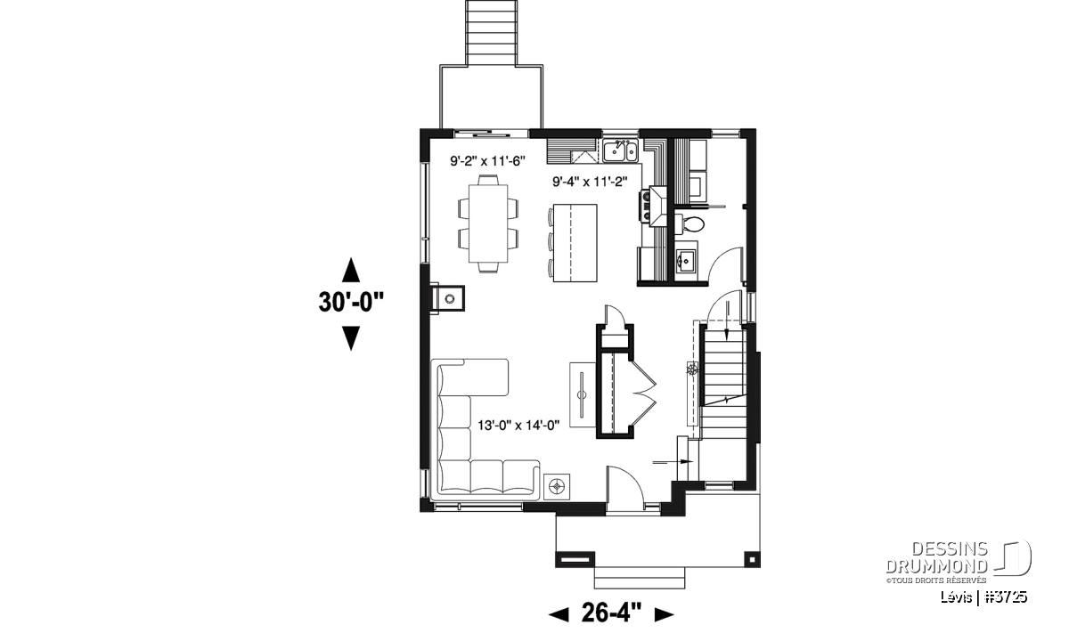 Largeur 26'4" Profondeur 30'0"