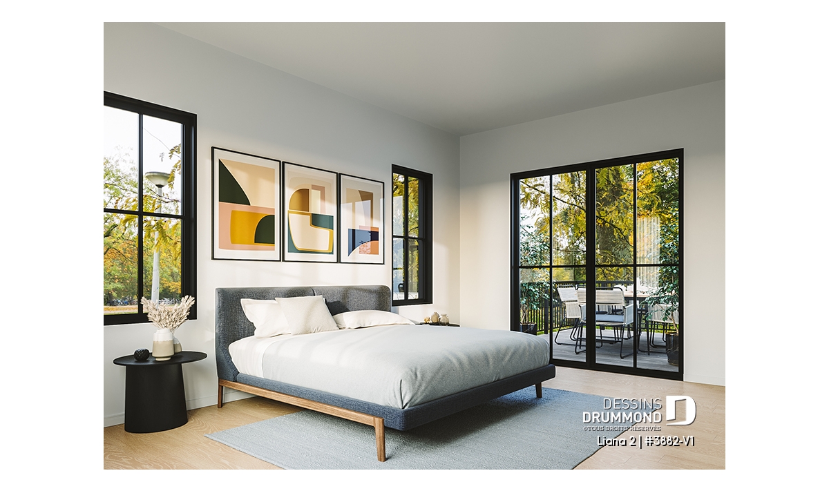 Grande chambre des parents avec salle de bain et balcon privés.