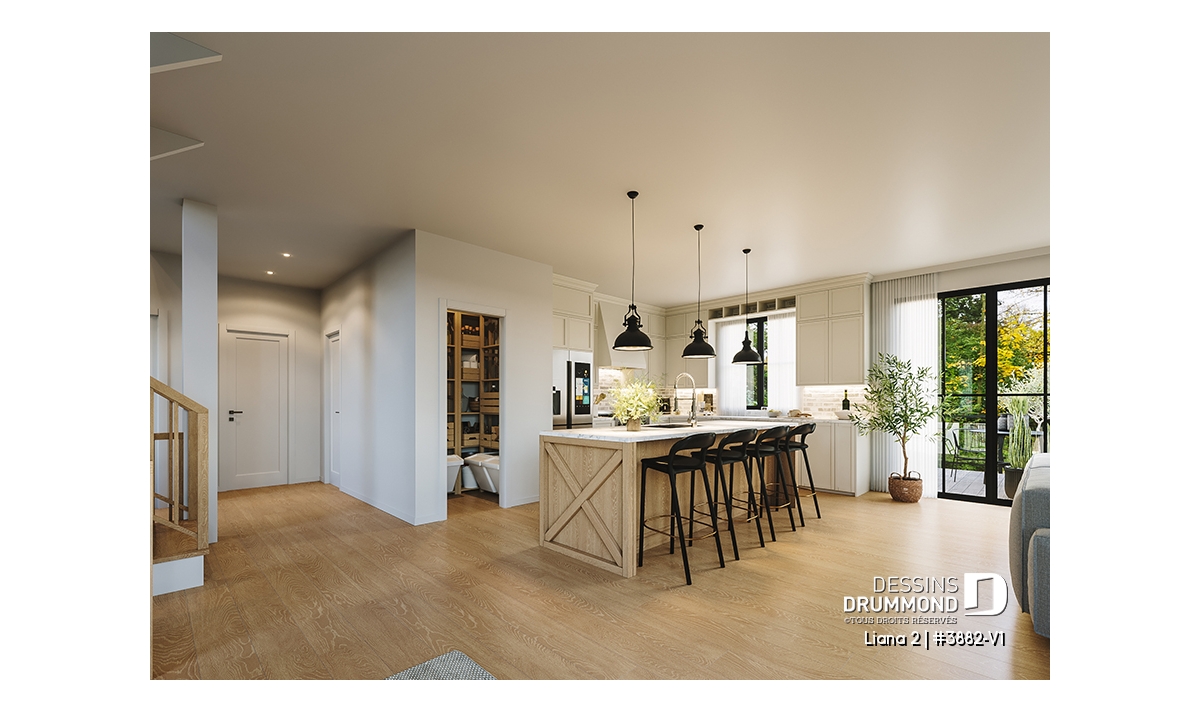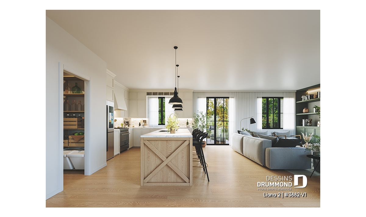 Garde-manger et îlot à la cuisine,