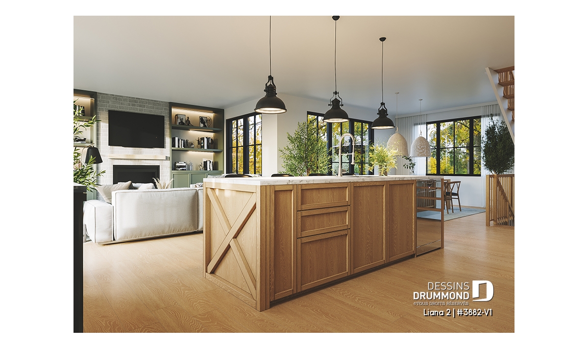 Accès au sous-sol du garage, Aire ouverte, Balcon à l'étage, Cinema maison, Entrée ouverte sur 2 étages, Garage spacieux, Salle de lavage au rez-de-chaussée, Suite des maîtres à l'étage, Salle de jeux, Bureau / Salle étude, Plafond à plus de 8', Garde-manger, Foyer, Meuble(s) encastré(s), Ilôt, Bain et douche séparés, Lavabo double, Walk-in ch. maîtres