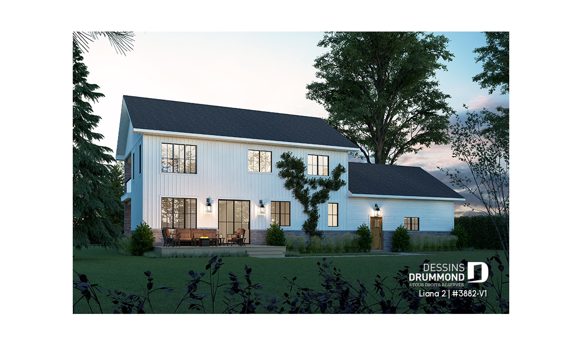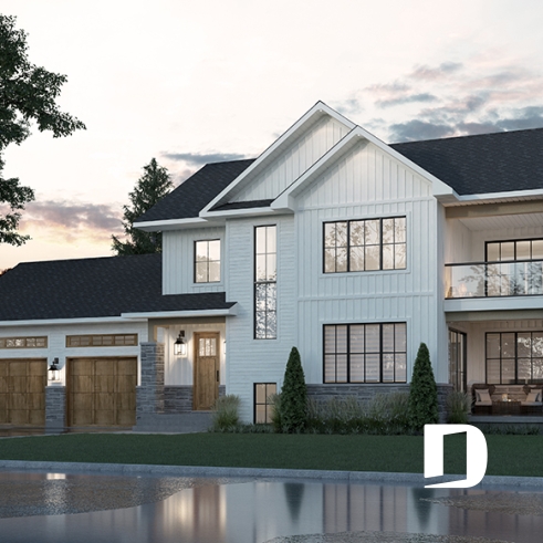 Superbe maison farmhouse avec fenestration abondante.