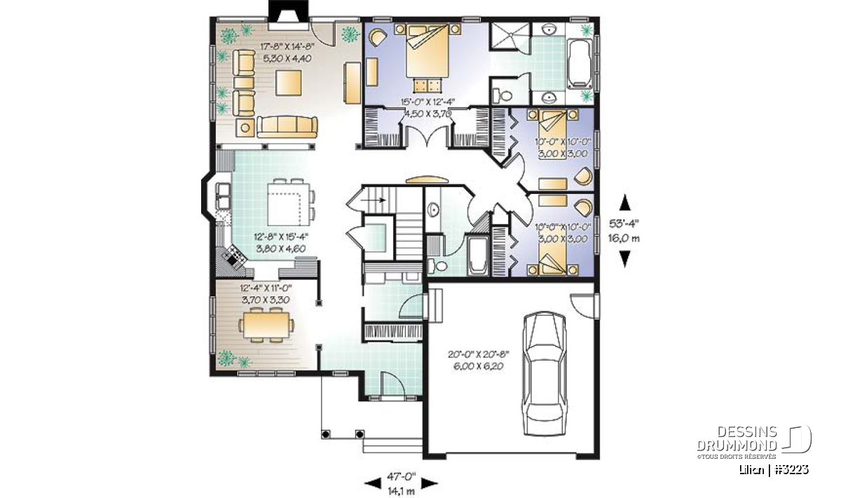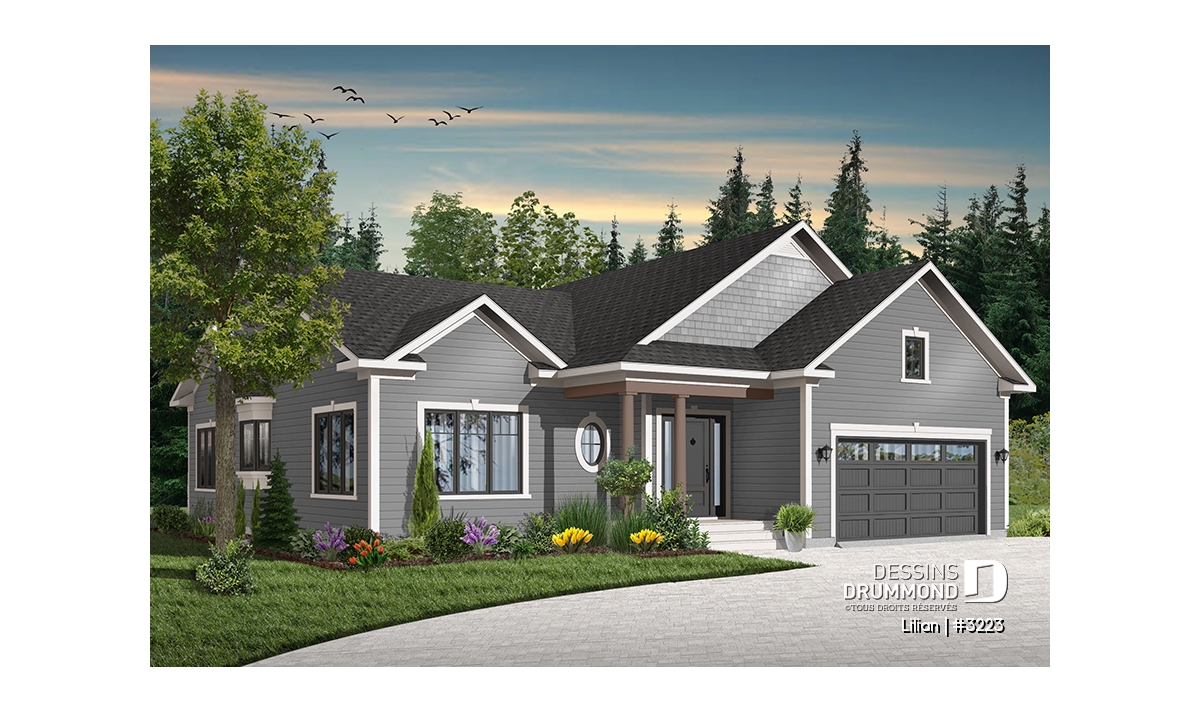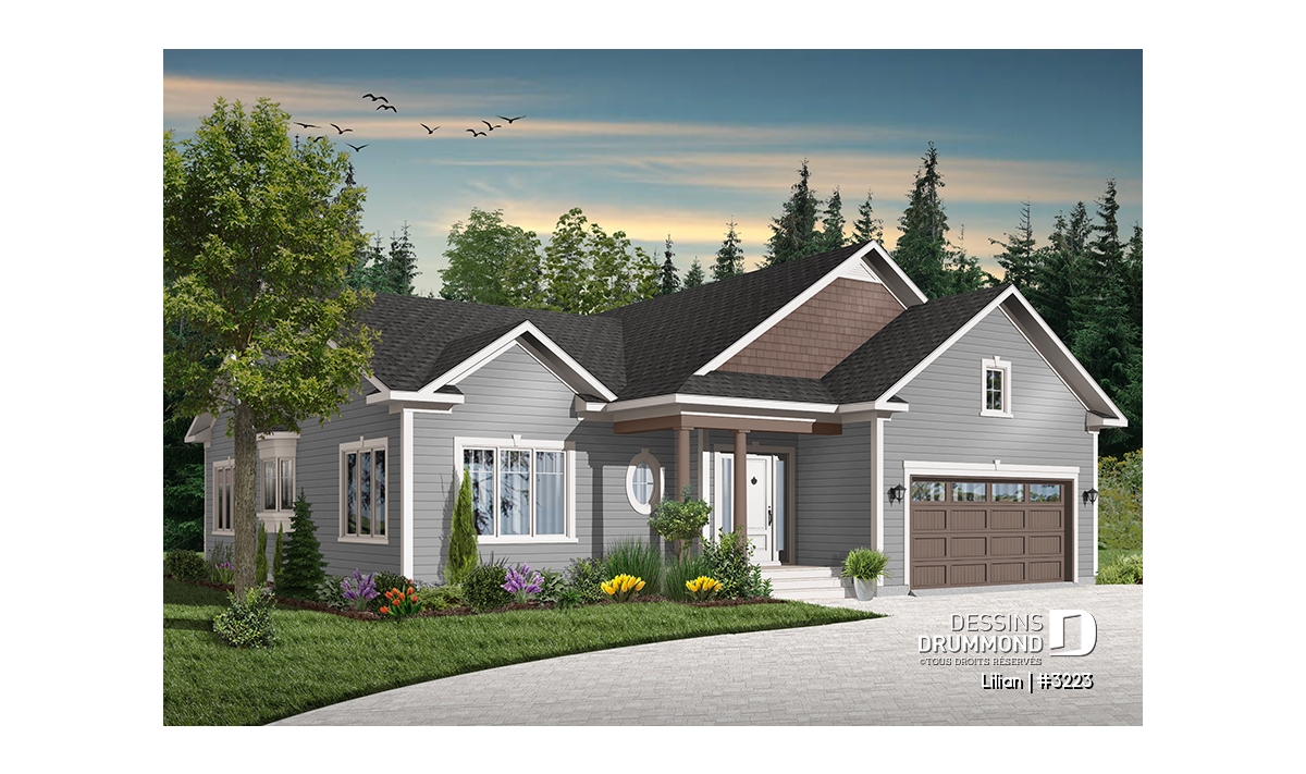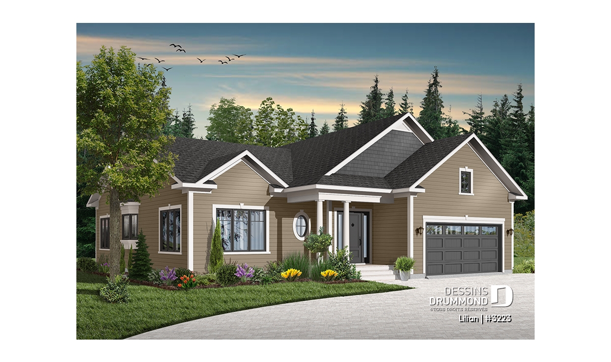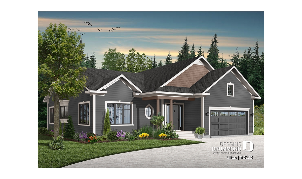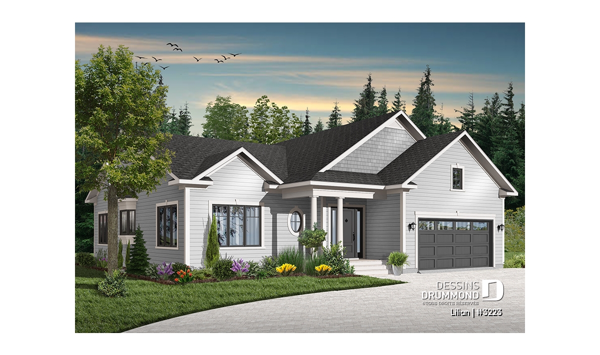 Si vous souhaitez profiter de tous vos espaces de vie sur un seul niveau, ce plan est fait pour vous. D’autant plus s’il comprend sur votre liste de souhaits un garage double, une superbe cuisine avec îlot central et garde-manger walk-in, une salle à manger conviviale, un salon avec foyer, une salle de lavage/vestiaire avec accès direct depuis le garage, une suite des maîtres avec une salle de bain luxueuse et deux walk-in distincts, ainsi que deux chambres secondaires.