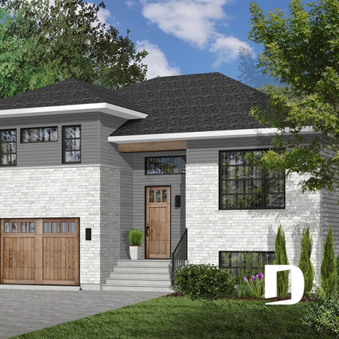 Conçu à parti du très populaire plan 2490, ce modèle à paliers se veut davantage confortable avec cet agrandissement de 3pi en largeur et de 2pi en profondeur. De plus, il se veut une solution attrayante pour tous ces propriétaires à la recherche d’un plan de maison doté d’un intérieur dynamique, ouvert et distinctif. C’est d’ailleurs cette approche à paliers qui confère au plan ces trois qualificatifs.