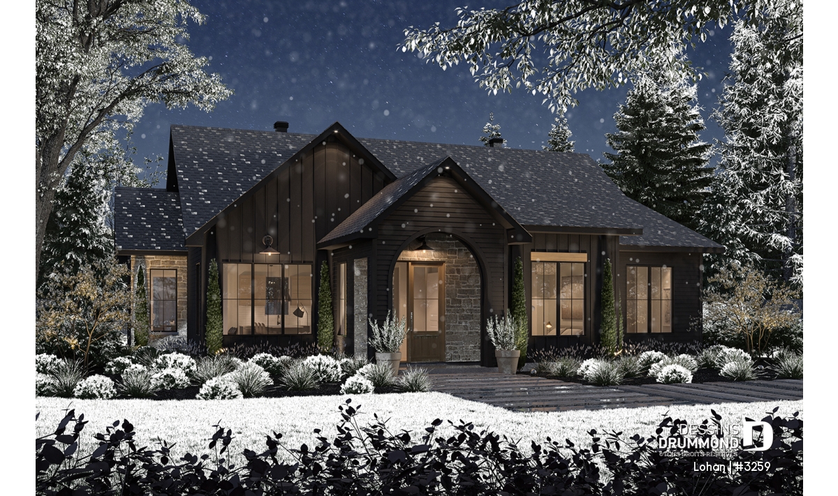 Le cachet chaleureux est amené par le choix des matériaux foncé et la pierre en façade.