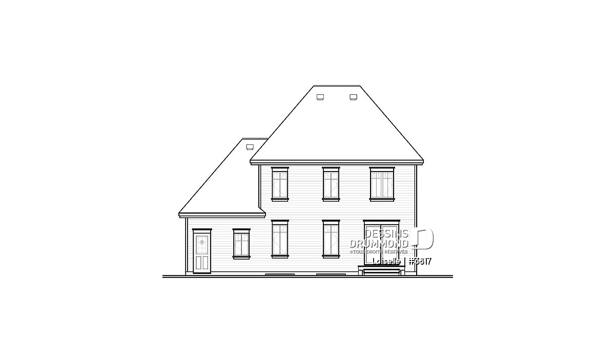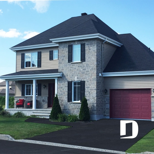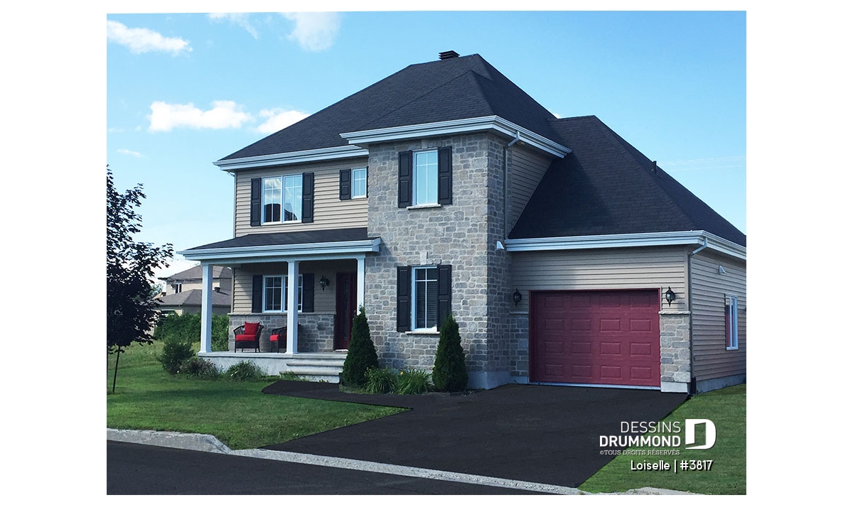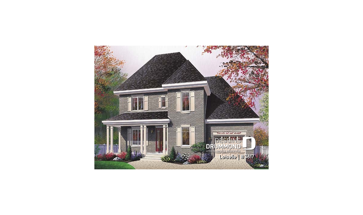 Une galerie aux colonnes multiples et balancées, des lignes simples, des ouvertures bien habillées et un garage plus que logeable sont tous là des attraits qui font le charme et le style de ce cottage d’esprit monumental anglais.
