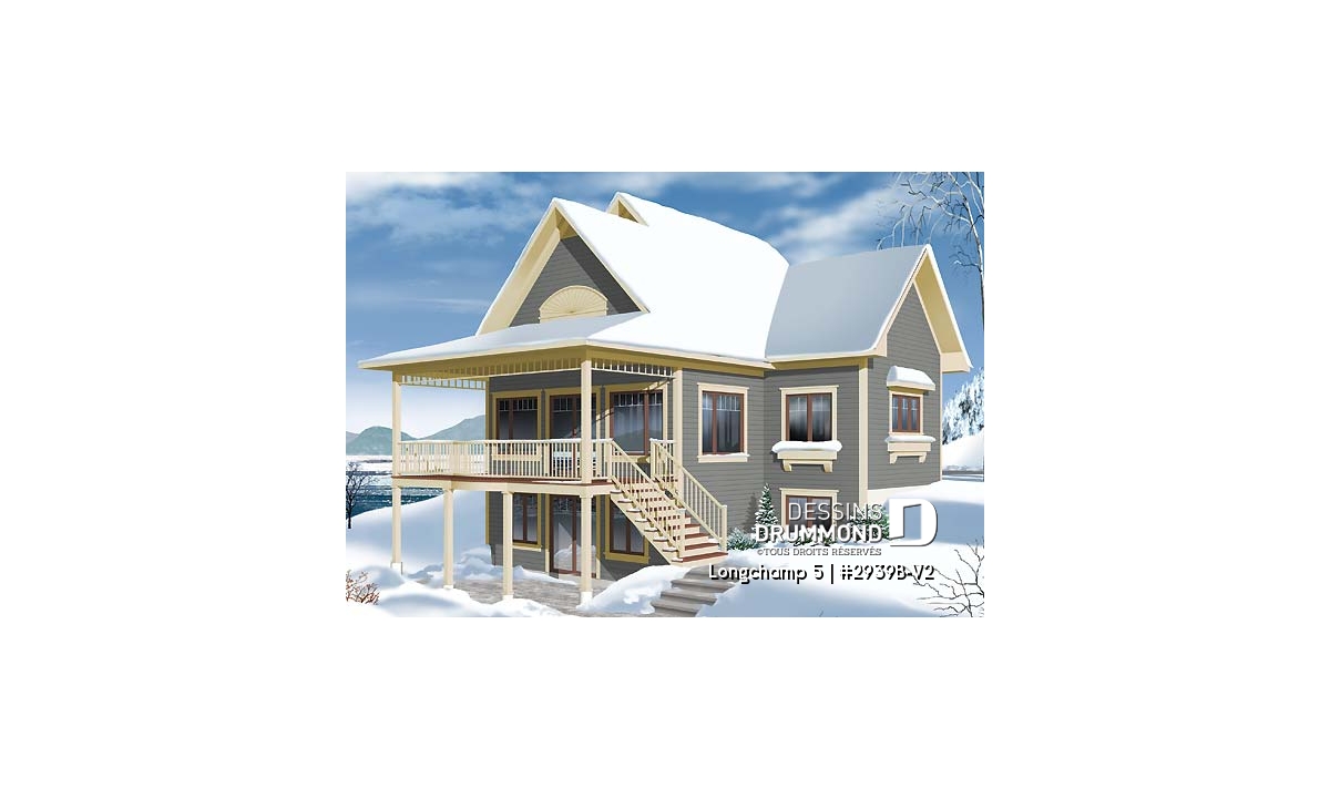 Conçu initialement sous le numéro de plan 2939, ce dernier s’est vu offrir différents modèles versions comme le 2939A, proposant ce même plan de façon inversée ou le 2939B avec coin buanderie prévu au rez-de-chaussée, sans oublier le 2939B-V1 pour lequel l’étage est éliminé et le sous-sol aménagé. Par contre, aucun d’entre eux ne suggérait un garage attaché et c’est pourquoi Dessins Drummond se fait un plaisir de vous offrir ce 2939B-V2.