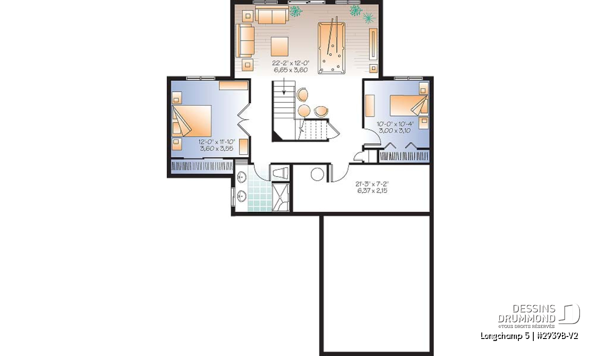 La fondation précisée à cette ligne est incluse dans le plan que vous recevrez, dans le prix du plan ainsi que dans l'estimation du coût de construction SAUF dans le cas d'un sous-sol aménagé. La finition d'un sous-sol aménagé n'est JAMAIS incluse dans notre estimation sauf si avis contraire précisé dans la description du plan et/ou dans la section élément distinctif, sur la page du plan. Un sous-sol aménageable est un sous-sol non-fini, à finir plus tard, selon vos besoins.