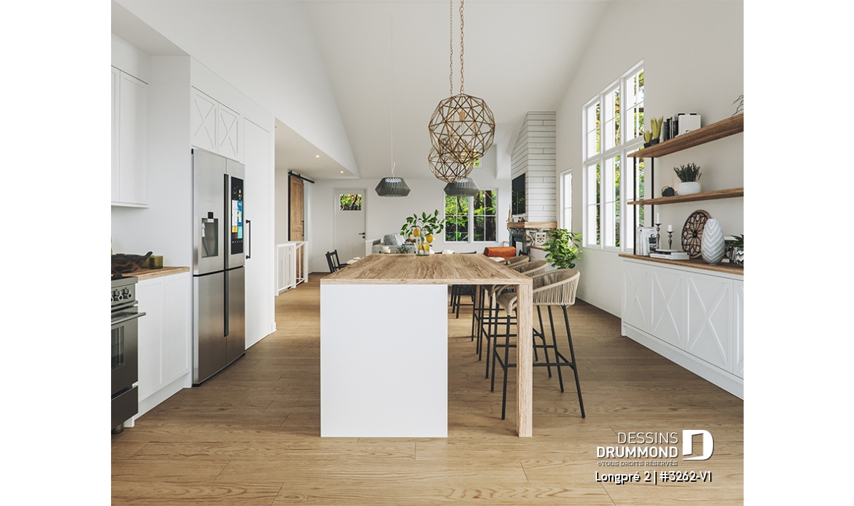 Plafond cathédrale, Foyer, Bain et douche séparés, Bar à café, Garde-manger, Suite des maîtres au rdc, Bureau / Salle étude, Vestiaire, Aire ouverte, Banquette, Walk-in ch. maîtres, Meuble(s) encastré(s), Ilôt