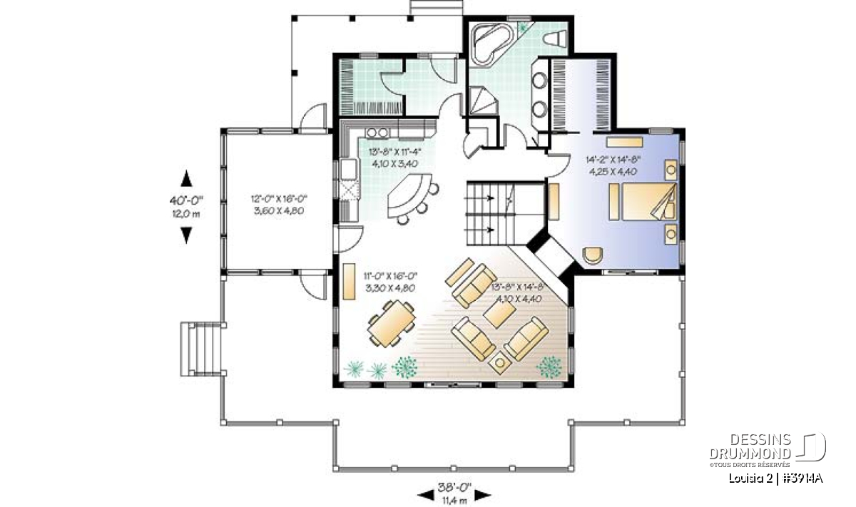 À l’intérieur, un escalier bien positionné permet l’aménagement de beaux espaces tout autour. Qu’il s’agisse du secteur activités du rez-de-chaussée, avec plafond à 9 pieds, ou du secteur repos de l’étage, chacun offre lumière, confort et fonctionnalité.