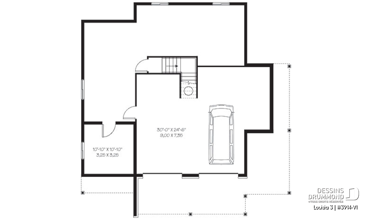 Garage double prévu au sous-sol avec espace atelier-rangement attenant.