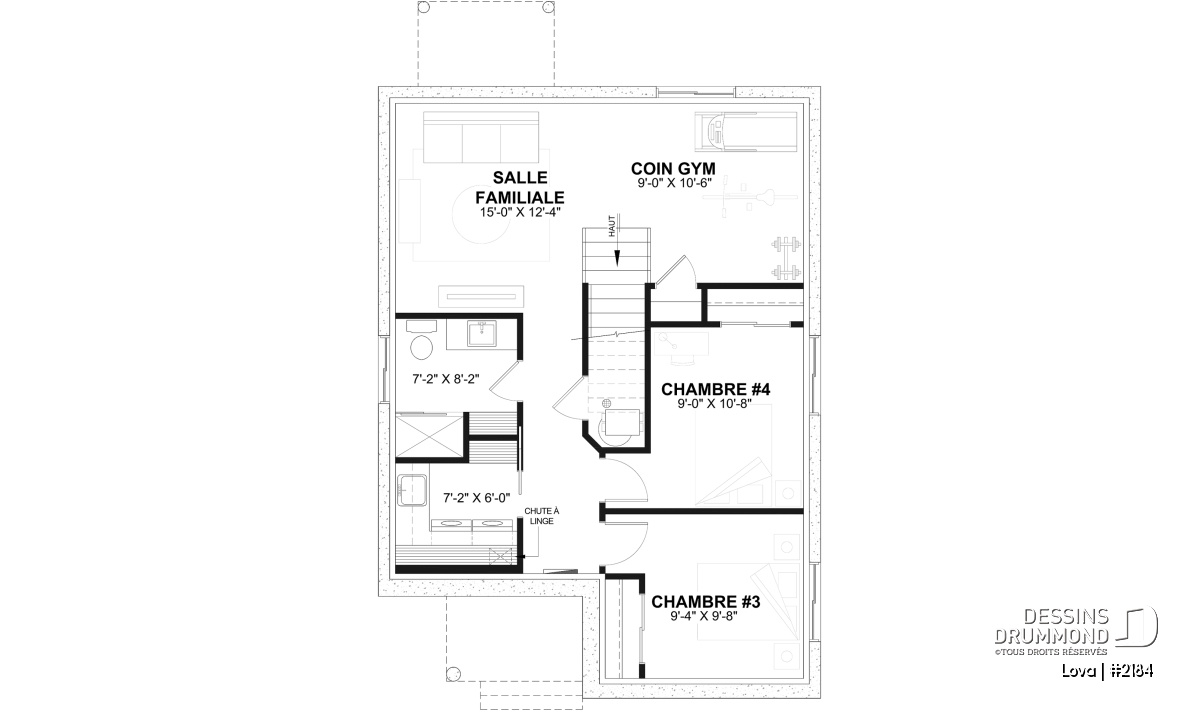 Le *sous-sol aménagé (optionnel $) ajoute une foule de possibilités à cette petite maison : deux chambres supplémentaires ou plus, une grande salle familiale, un coin gym motivant, une salle de lavage bien équipée et même une salle de douche pour plus de commodité.