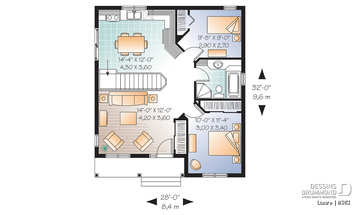 Largeur 28'0" Profondeur 32'0"