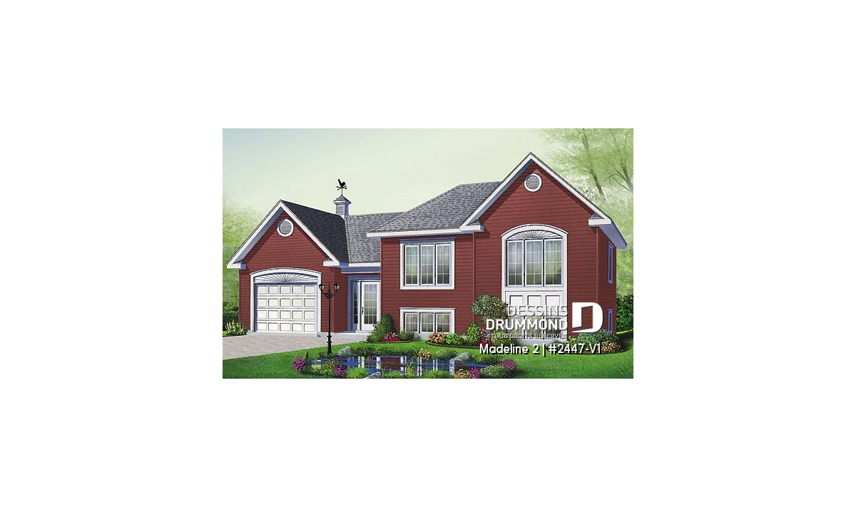 Bungalow split level avec garage, 2 chambres, grande cuisine