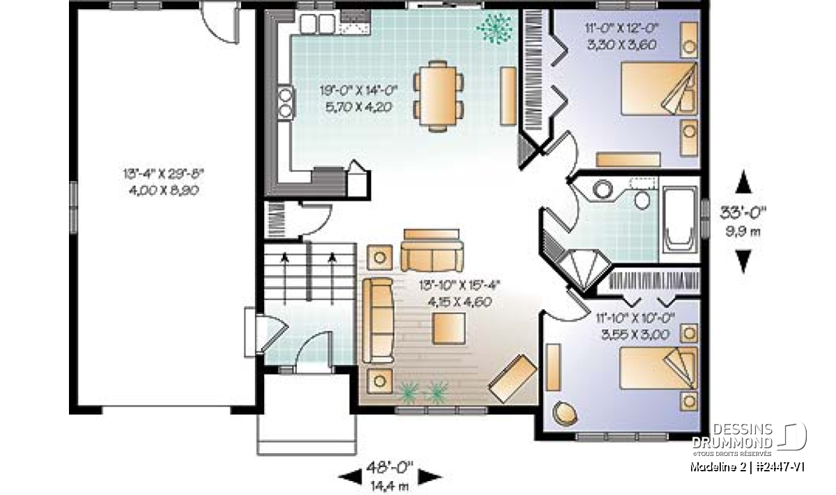 | Largeur | 48'0" | Profondeur | 33'0" |