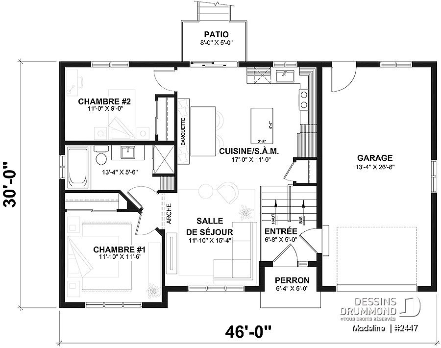 Tous les plans de Dessins Drummond ne peuvent être modifiés que par Dessins Drummond et ses agences reconnues; si vous faites modifier votre plan par une autre entreprise ou personne que Dessins Drummond, assurez-vous que cette entreprise ou personne détient une licence pour la modification de ce plan sinon, vous êtes passible de poursuite judiciaire au même titre que l'entreprise ou la personne avec qui vous avez fait affaires pour la modification ou la reproduction du plan.