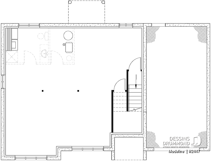 La fondation précisée à cette ligne est incluse dans le plan que vous recevrez, dans le prix du plan ainsi que dans l'estimation du coût de construction SAUF dans le cas d'un sous-sol aménagé. La finition d'un sous-sol aménagé n'est JAMAIS incluse dans notre estimation sauf si avis contraire précisé dans la description du plan et/ou dans la section élément distinctif, sur la page du plan. Un sous-sol aménageable est un sous-sol non-fini, à finir plus tard, selon vos besoins.
