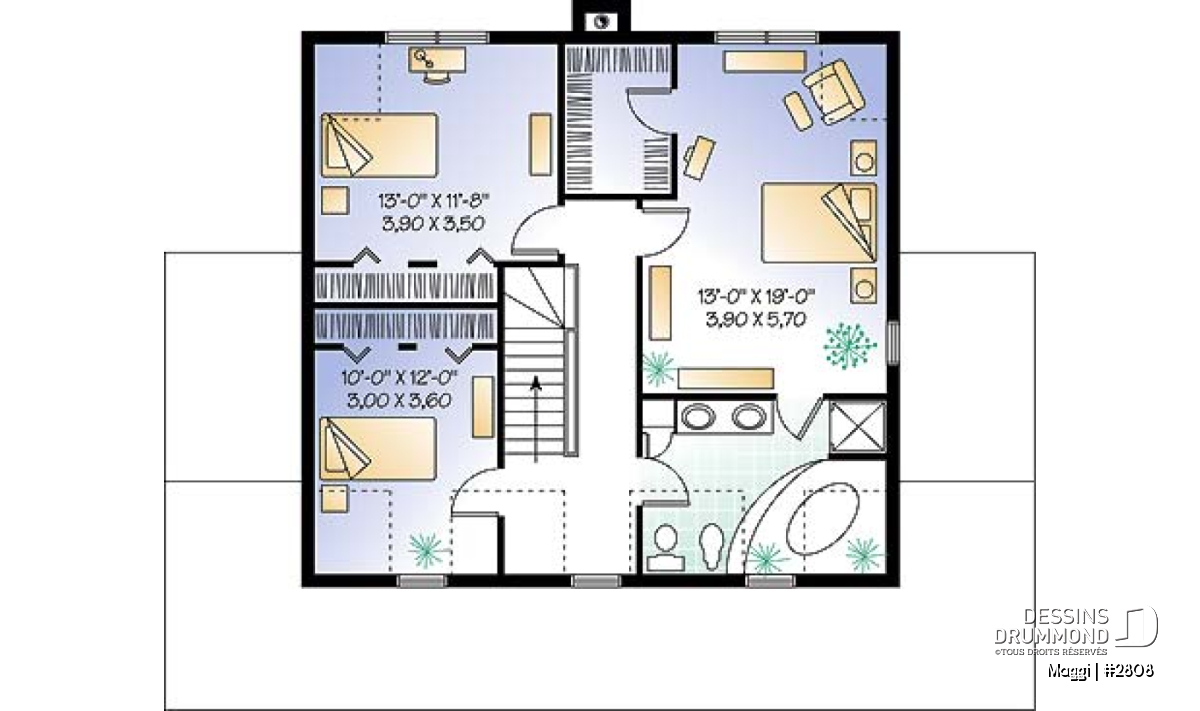 Étage - Plan de maison champêtre 3 chambres, garage, grande suite des maîtres, grand balcon couvert - Maggi