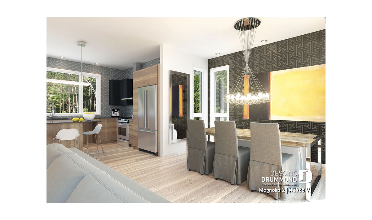 Ce modèle versatile se veut être une version réinventée et modernisée du style américain Farmhouse, ou plus localement, la maison de campagne. Que ce soit comme chalet ou en résidence principale, vous serez charmés par l’approche minimaliste des revêtements et teintes de cette magnifique maison campagnarde, et aussi par la quantité imposante de fenêtres et porte-patios laissant entrer la lumière naturelle.