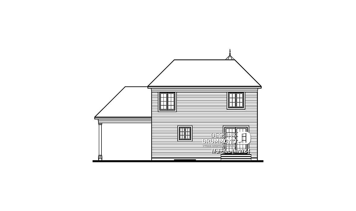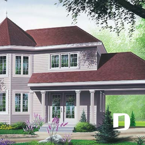Vue avant - MODÈLE DE BASE - Plan de maison champêtre, belle lumière naturelle, abri d'auto, chambre des maîtres dans la tourrelle - Mahaleb