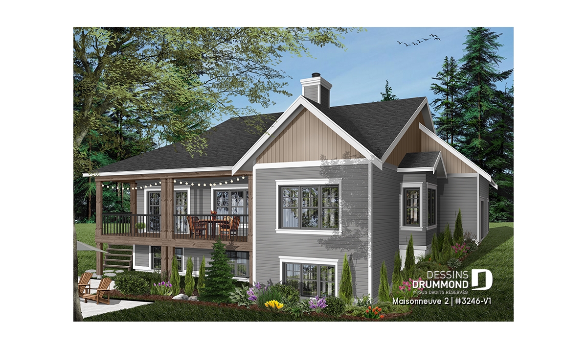 Bureau / Salle étude, Espace boni aménageable, Foyer, Mezzanine, Suite des maîtres au rdc, Suite d'invités, Plafond à plus de 8', Vue paronamique, Salle de lavage au rez-de-chaussée, Salle de jeux, Terrasse abritée, Comptoir-lunch, Bain et douche séparés, Bar à café, Lavabo double