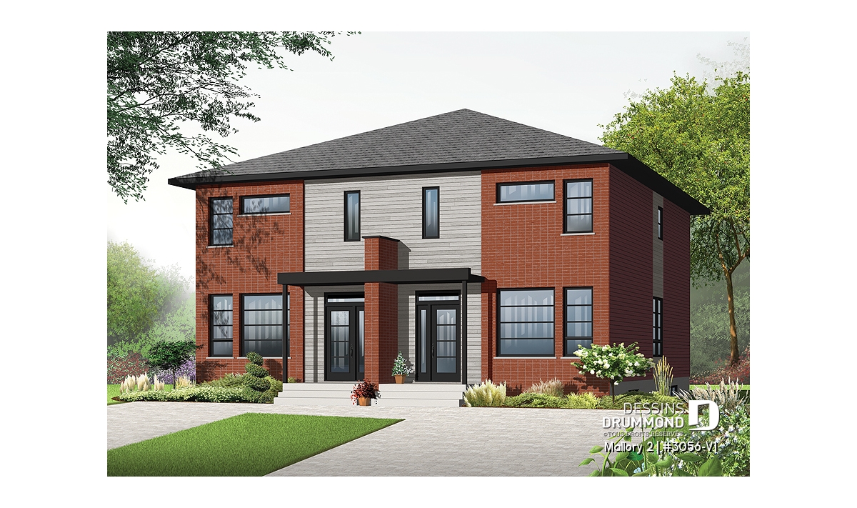 Vous êtes à la recherche d’un plan de jumelé vous offrant différentes possibilités intérieures comme extérieures ? Regardez de près ce modèle 3056-V1, tout comme le 3056 original, et appréciez les différents intérieurs à la fois contemporains et facilement interchangeables grâce à un aménagement stratégique des ouvertures.