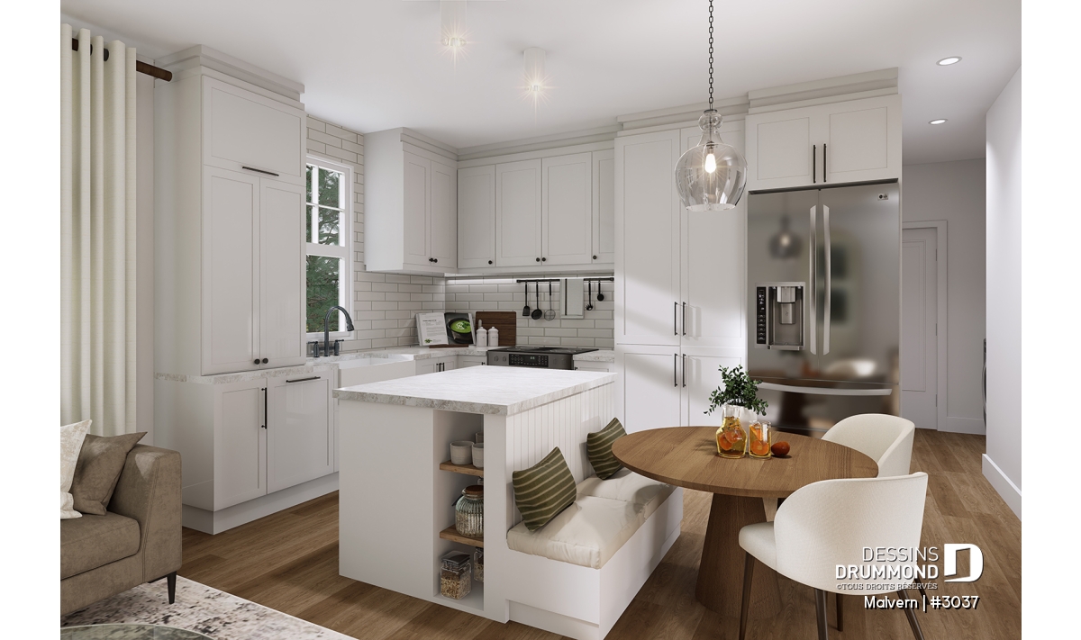 Galerie 2-3 côtés, Plafond cathédrale, Vestibule, Lavabo double, Garde-manger, Aire ouverte, Arche, Salle de lavage au rez-de-chaussée, Plafond à plus de 8', Ilôt, Banquette, Meuble(s) encastré(s)