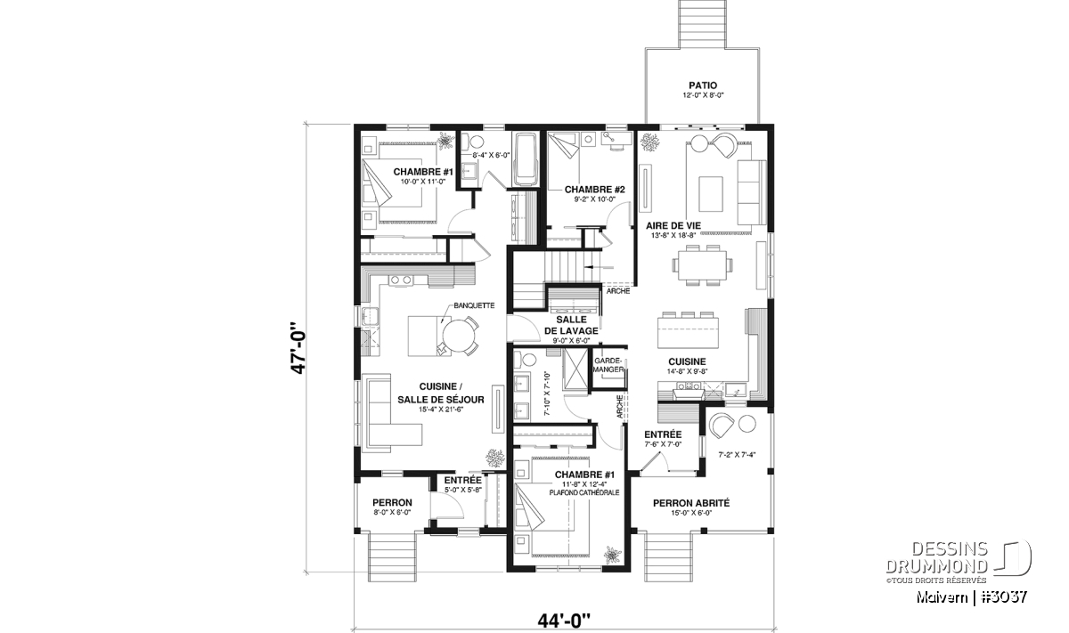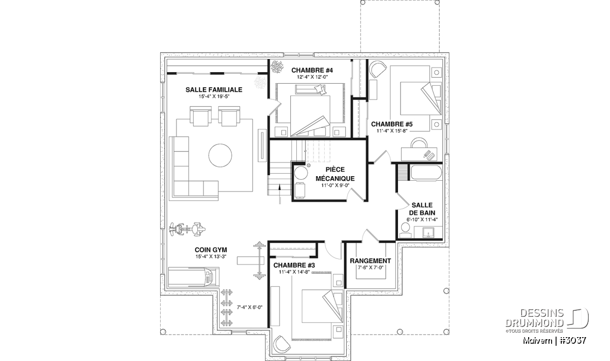 Une salle familiale est également prévue au sous-sol pour le logement principal (#1).