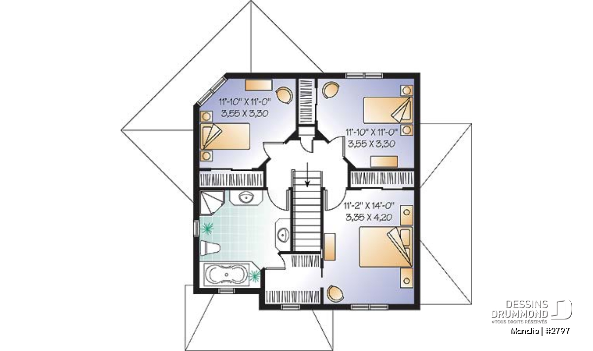L'espace boni aménageable est généralement prévu au-dessus du garage et il est accessible de la maison. Comme il est prévu aménageable, il pourra devenir un bureau, un espace buanderie, une salle de bain, un coin bibliothèque ou même une chambre additionnelle pour laquelle les propriétaires devront s'assurer d'avoir une fenêtre conforme aux normes en vigueur. De plus, la finition de cette espace boni est toujours INCLUSE dans nos estimation du coût de construction, sauf si avis contraire dans les sections « Description et/ou Éléments descriptifs » de la page du plan.