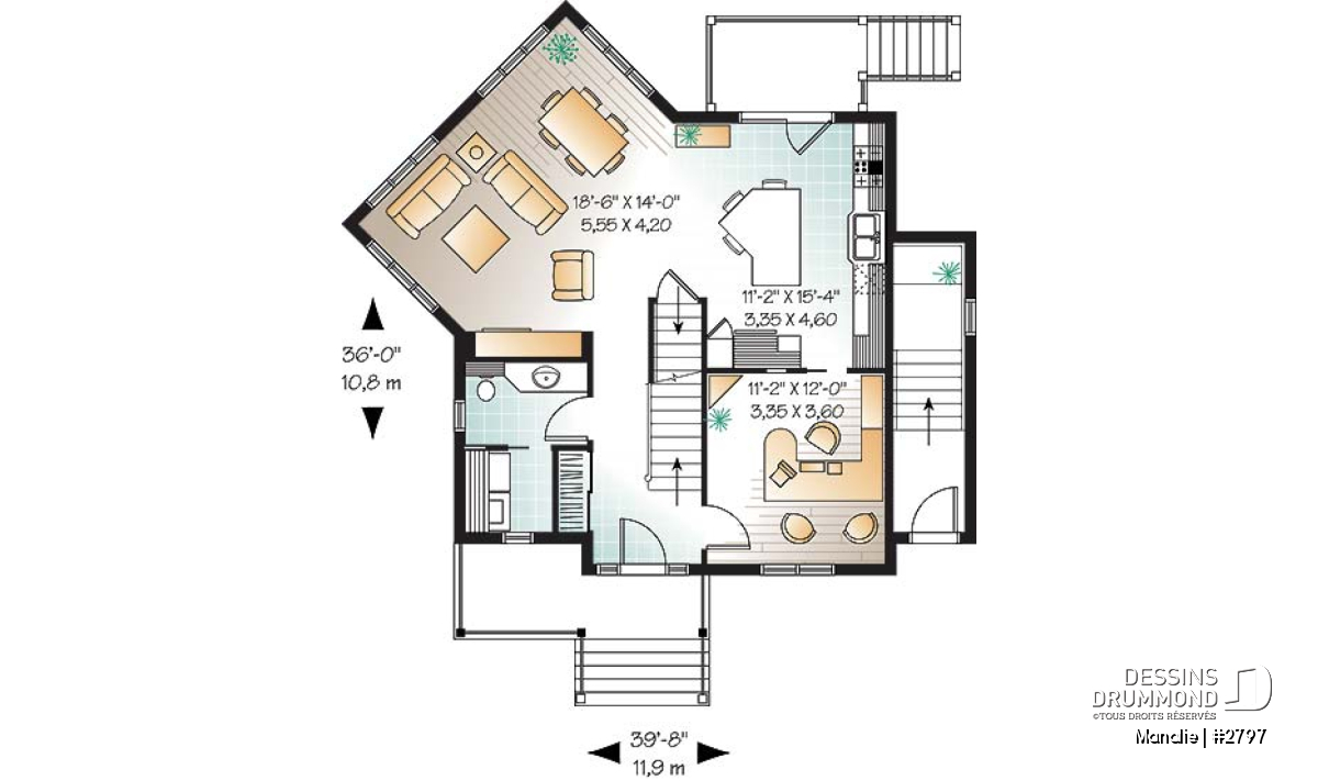 | Largeur | 39'8" | Profondeur | 36'0" |