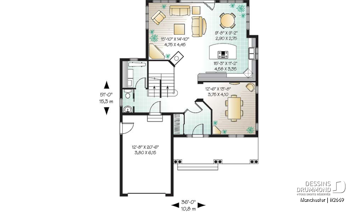 Plafond à 9 pi au rez-de-chaussée.