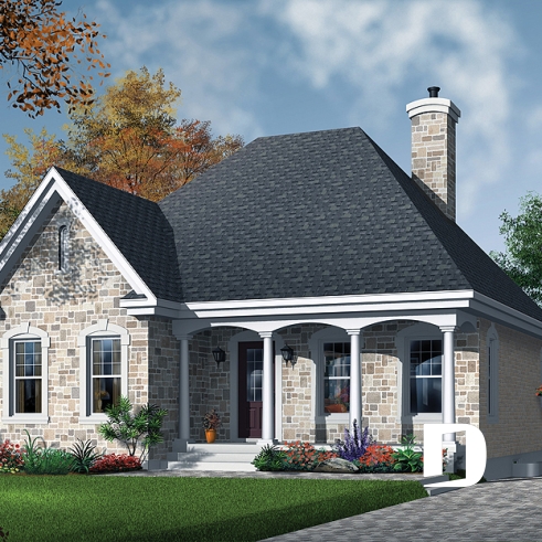 Plan de maison de Style Européen, plain-pied économique, 2 chambres, fenestration abondante