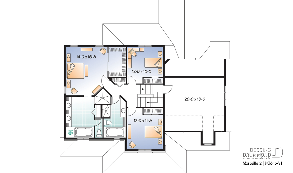 Trois belles chambres dont une suite des maîtres avec garde-robe walk-in et salle de bain privée suggérant une douche indépendante d'environ 48" x 60".