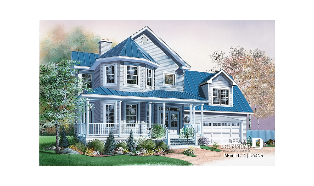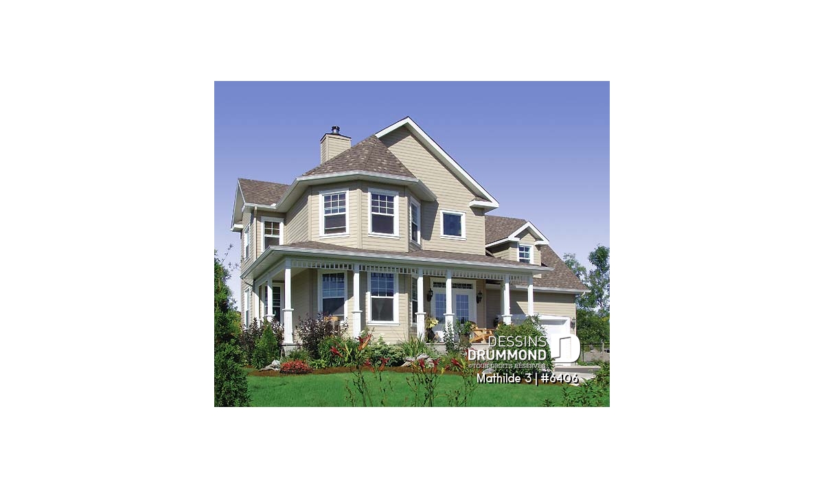 Ici, rien n’échappe au concepteur. Une grande galerie, liant la façade avant à la façade gauche, assure un accès couvert à la porte principale et à la porte secondaire donnant sur la salle à manger alors qu’un volume à angle, en saillie et sur deux étages, procure charme et lumière tant à la salle de séjour qu’à la chambre des maîtres. Un garage, suffisamment imposant et abaissé comme recherché dans les nouveaux quartiers résidentiels, propose un espace boni fort attrayant au-dessus et que bien des propriétaires apprécieront aménager à leur guise.