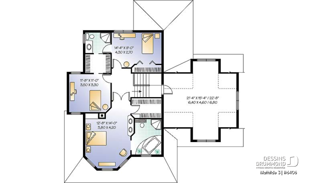 Au rez-de-chaussée, un beau vestibule, une grande salle à manger dotée d’un foyer mitoyen avec la salle de séjour et un vaste espace cuisine/dînette bien fenêtré viennent justifier l’engouement pour ce modèle alors qu’à l’étage, trois belles chambres, munies de rangements attrayants, et deux salles de bain, dont une propre à la chambre des maîtres, ajoutent à l’attrait indéniable de cette résidence.