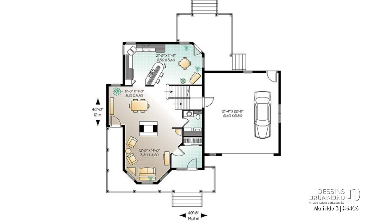 Plafond à 9 pieds au rez-de-chaussée. Foyer à deux faces.