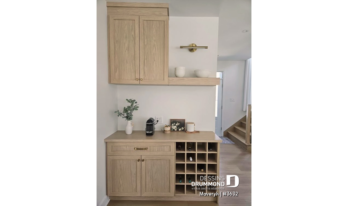 Le rez-de-chaussée à plafond de 9 pieds impressionne par sa clarté et son espace. Le salon au plafond cathédrale de plus de 18 pieds ajoute un effet spectaculaire, tout en laissant la lumière naturelle inonder les aires ouvertes. L’entrée principale et celle du garage mènent vers un vestiaire fonctionnel avec jolie banquette, parfait pour le quotidien des familles actives.