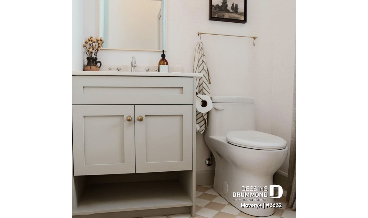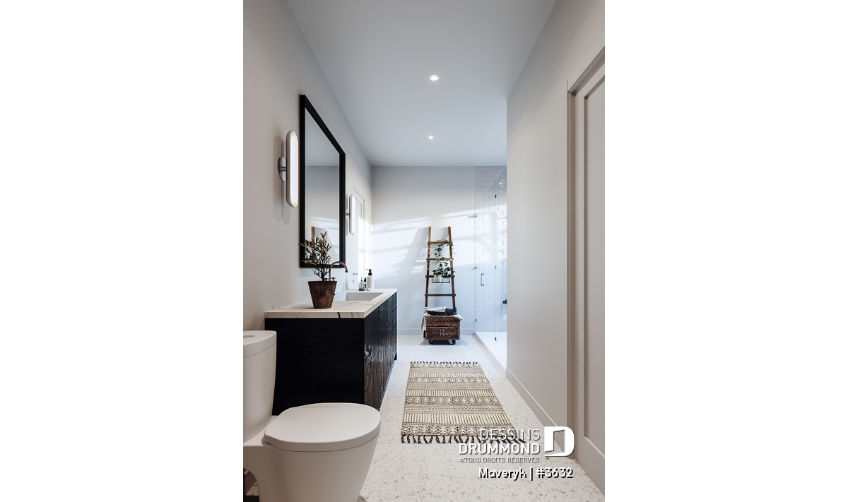 Grand garde-manger pratique et salle d’eau en retrait pour plus d’intimité.